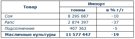 Крупнейшими импортерами рапса стали: Германия (0,9 млн т), Нидерланды (0,7 млн т) и Бельгия (0,6 млн т).