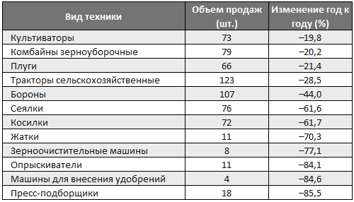 При этом эксперты отмечают, что январь традиционно является месяцем слабого спроса: активные закупки техники обычно начинаются ближе к весенней посевной и осенью после продажи урожая.
