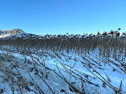 Павлодарские хозяйства пытаются продолжить уборку подсолнечника-2025, но мешает снег
